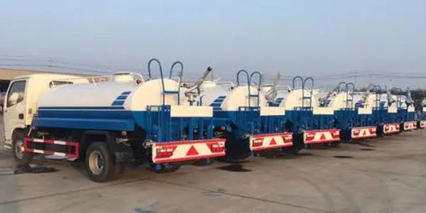 灑水車又稱爲噴灑車、多功能(néng)灑水車、園林綠化灑水車、水罐車、運水車。适合于各種(zhǒng)路面(miàn)沖洗,樹木、綠化帶、草坪綠化,道(dào)路、廠礦企業施工建設,高空建築沖洗。具有灑水、壓塵、高、低位噴灑,農藥噴灑、護欄沖洗等功能(néng),還(hái)具有運水、排水,應急消防等功能(néng)。前噴後(hòu)灑,前裝有鴨形噴嘴或圓頭沖嘴,後(hòu)面(miàn)裝有圓柱開(kāi)灑水噴嘴或蓮蓬頭噴嘴,後(hòu)部有一工作平台,裝配有高壓水炮。後(hòu)部還(hái)可裝8個噴