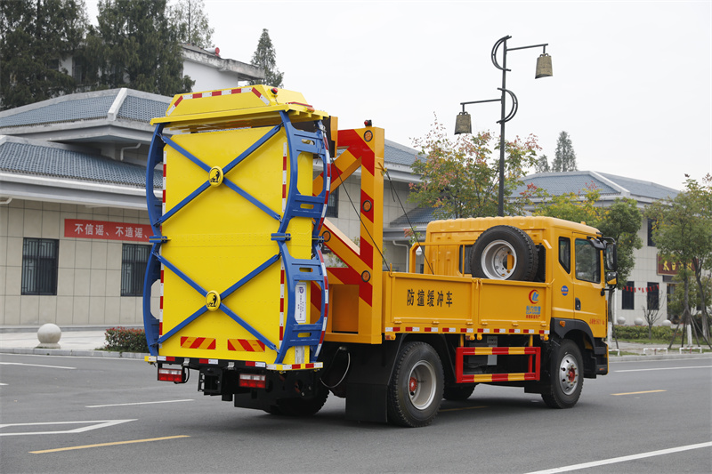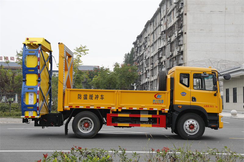 采用Q235國(guó)标邊3mm底闆花紋闆4mm厚,箱體後(hòu)部防撞緩沖模塊包采用國(guó)際知名技術産品100K防撞緩 沖模塊,防撞緩沖吸能(néng)模塊主要由車載防撞緩沖墊和導向(xiàng)标志架組成(chéng),充當施工作業車輛後(hòu)方的緩沖衛士。 如若發(fā)生追尾事(shì)故,能(néng)夠在肇事(shì)車輛和前方施工作業區域之間構建一個緩沖區域,通過(guò)機具結構變形吸收撞 擊的能(néng)量,**限度地降低被(bèi)保護人員及設備遭到碰撞的幾率。高性能(néng)液壓系統,可實現快速舉升和落下操 作,方便設備運輸轉場,一鍵啓動功能(néng),舉升和落下防撞裝置,當防撞裝置未完全落下到工作位置或舉升到 垂直運輸位置時(shí),會(huì)有自動**告音提示。