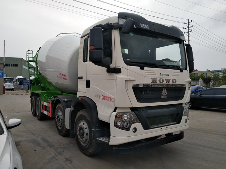 重汽T5G12-14方輕量化攪拌車配置:T5G-M白色排半駕駛室,重汽340馬力發(fā)動機,HW13710L變速箱,11.00R20鋼絲胎,ST16噸後(hòu)橋,帶ABS、PTO,電動翻轉,其餘标配。
