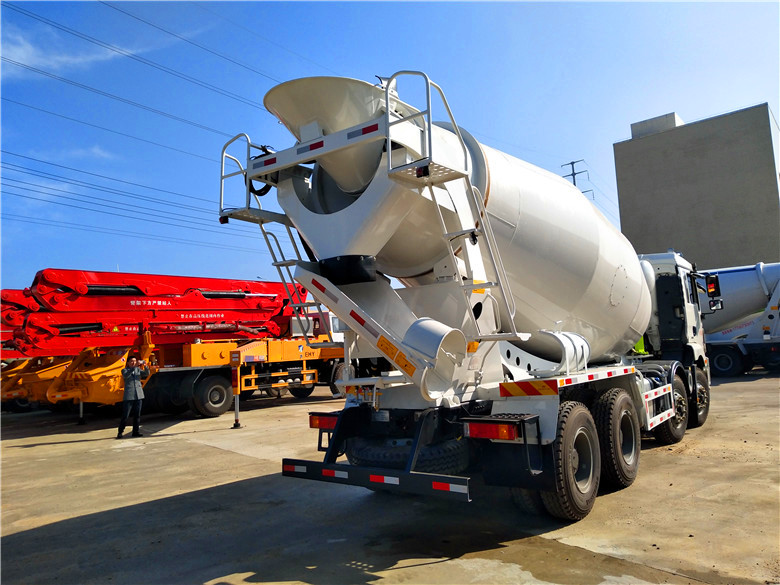 上裝配置:意大利綁飛力減速機(可選裝PMP)、德國(guó)力士樂油泵、馬達、凱鵬散熱器,帶氣壓供水裝置,帶氣壓供水裝置。罐體封頭采用8mm高強度耐磨材質,罐體采用4mmH700高強度耐磨鋼材質,鋼材屈韌性強,以達到輕量化(整備質量:14.2-14.3/噸),使用期耐磨度遠勝于常規攪拌車材質。整車尺寸:10250x2550x3995mm
